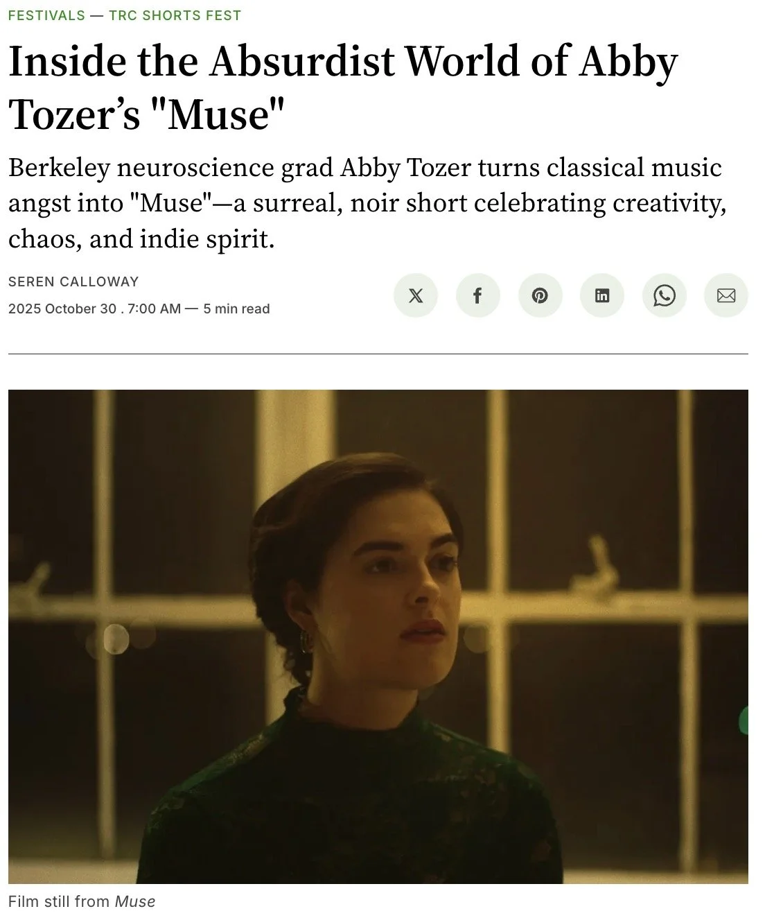 Press “Texan filmmaker weighs in on future of the industry ahead of Oscars” “Woodlands grad Abby Tozer pursuing filmmaking in Los Angeles, launches production company” “Inside the absurdist world of Muse” “Daily Inspiration: Meet Abby Tozer”